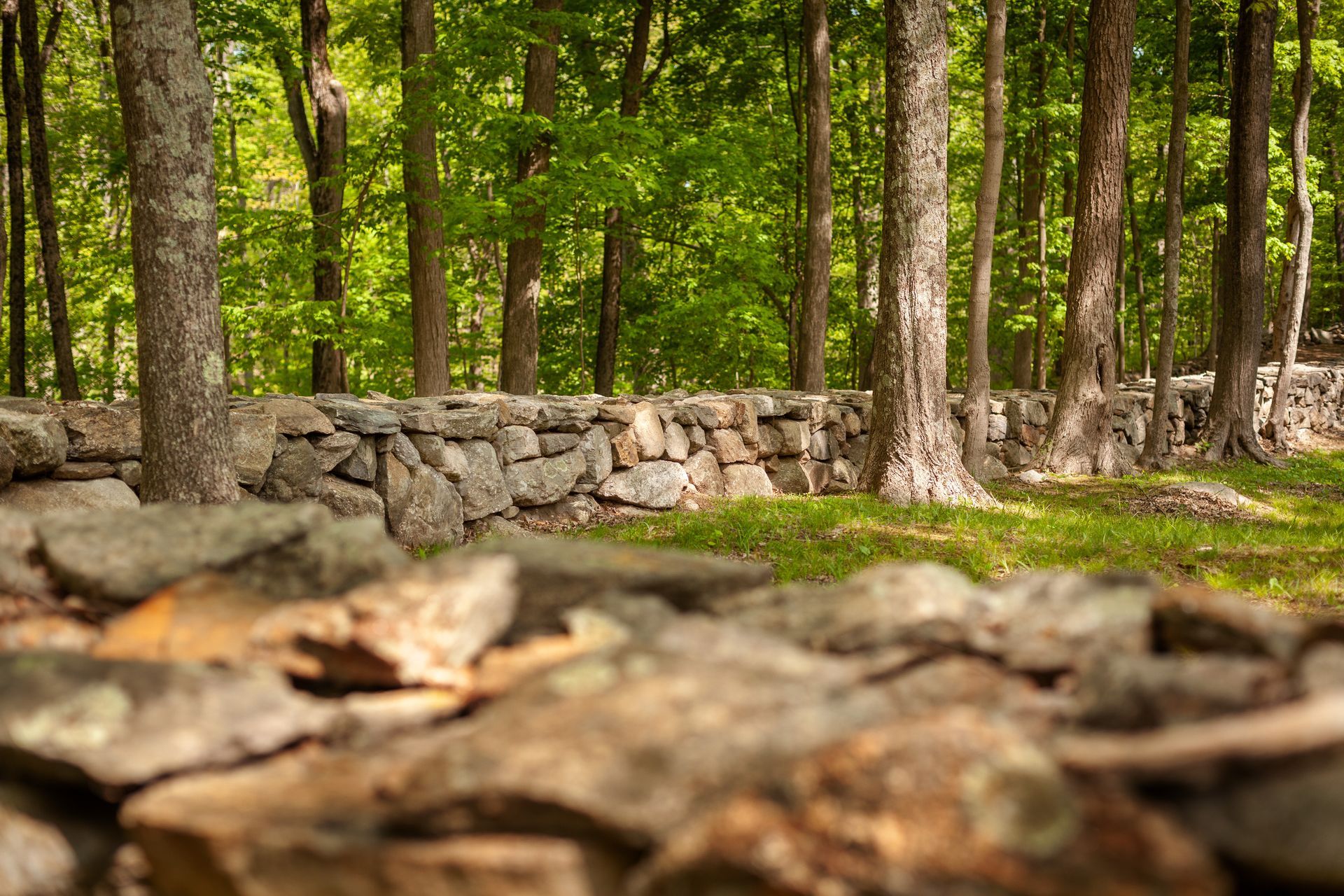 Old Farm Fieldstone wall adjacent the Mianus Gorge Nature Conservancy. This historic wall was returned to its former glory as a standout feature on the property.